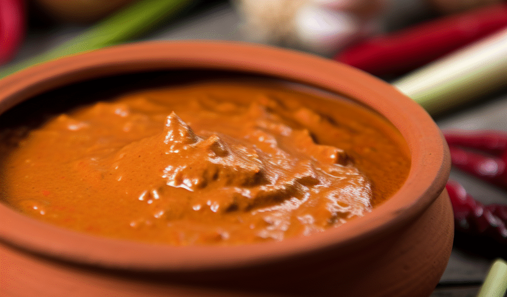 - Main Ingredients: Red chilies, coconut milk, lemongrass, garlic, galangal