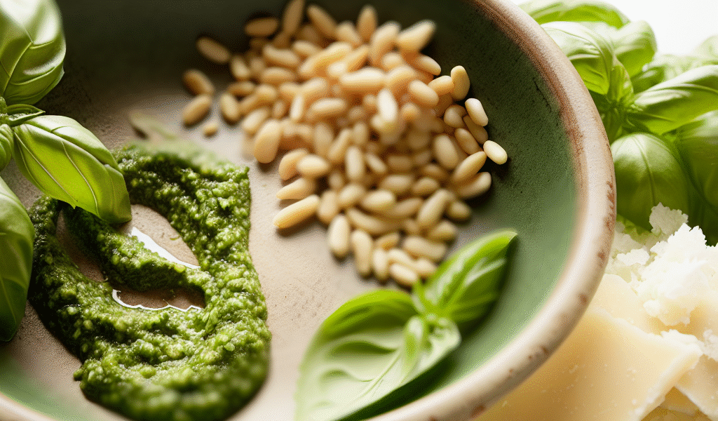 - Main ingredients: Basil, pine nuts, garlic, Parmesan, olive oil